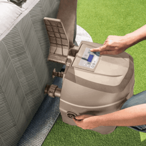 Mit 140 Luftdüsen und einem 800 W-Watt-Luftgebläse sorgt er für wohltuende Massagen, während die 2.200 W-Watt-Heizung das Wasser schnell auf bis zu maximal 40°C aufheizt. Dank Salzwassersystem und WLAN-Steuerung per Intex Link App ist er besonders benutzerfreundlich. Die robuste Vinyl-Verkleidung und das Kalkschutzsystem garantieren Langlebigkeit.