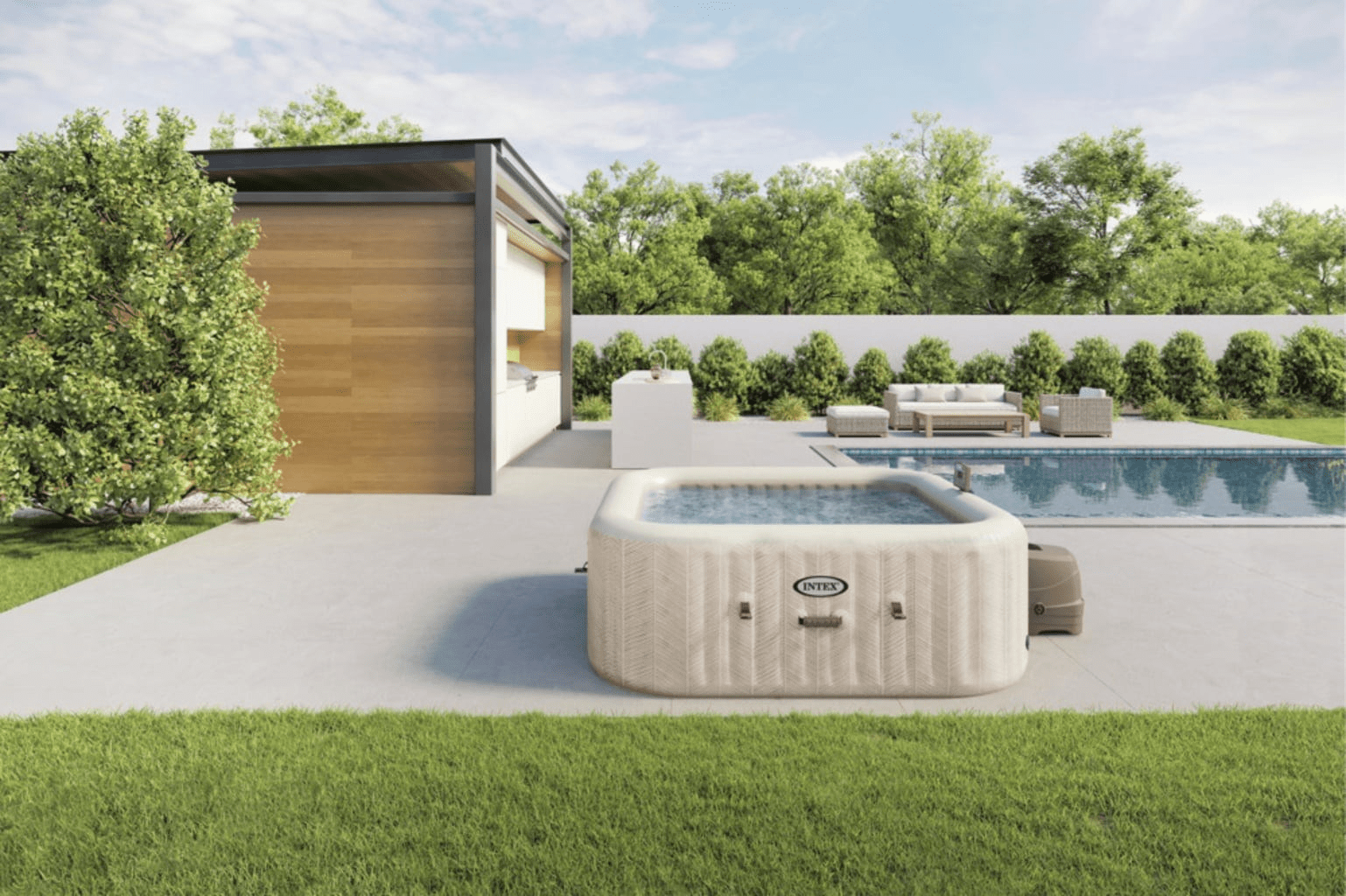 Der Intex PureSpa Chevron Deluxe Square ⧄ 211 x 71 cm bietet luxuriöse Entspannung für bis zu 4 Personen auf einer Fläche von ⧄ 211 x 71 cm.