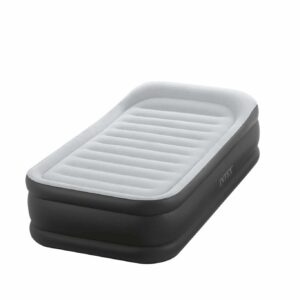Eines der meistverkauften Luftbetten von INTEX ist das 99 x 191 x 42 cm große Deluxe Pillow Rest Raised Twin. Dieses Bett gibt es nun auch in mit der innovativen Fiber-Tech ™ Technologie, der perfekten Schlaflösung für Sie oder Ihre Gäste. Eine qualitätsgeprüfte, starke, wasserfeste und beflockte Oberseite bzw. eine starke Seitenwand, bzw. Vinyl Boden sorgen für eine hohe Stabilität. Mit der integrierten 230 V Luftpumpe ist das Luftbett innerhalb von Minuten einsatzbereit. Der eingebaute Polster bzw. eine Matratzenhöhe von 42 cm vermittelt einen angenehmen Liegekomfort. Die Lieferung erfolgt inklusive Tragetasche.