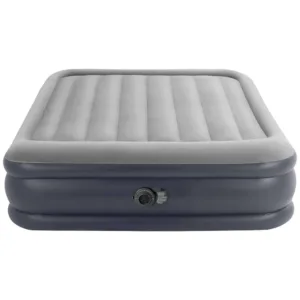 Das 152 x 203 x 42 cm große Luftbett „Deluxe Pillow Rest Raised Airbed“ Queen mit integrierter Elektropumpe aus der Dura-Beam® Plus Serie von Intex ist die perfekte Schlaflösung für den Heimgebrauch. Die innovative, patentierte Fiber-Tech™ Technologie verbessert mittels leichter und hochfester Fasern die innere Standardkonstruktion, dadurch schafft sie eine ausgezeichnete Widerstandsfähigkeit und eine enorme Bequemlichkeit. Die Wellenbalkenkonstruktion schafft eine einheitliche Liegefläche, die Ihnen eine gute Nachtruhe garantiert, egal wo Sie sind. Die qualitätsgeprüfte, beflockte Oberseite, die komfortable Matratzenhöhe von 42 cm sowie das integrierte Kissen ermöglichen ein absolut angenehmes Relaxen und erholsames Schlafen. Die eingebaute elektrische Pumpe (220 – 240 V) macht das Aufpumpen schnell und einfach. Es bedarf keiner separaten Pumpe. Das Airbed ist innerhalb von 3 ¼ Minuten aufgepumpt. Durch die praktische Aufbewahrungstasche kann das Bett einfach transportiert und verstaut werden. Max. Gewichtsbelastung: 272 kg.