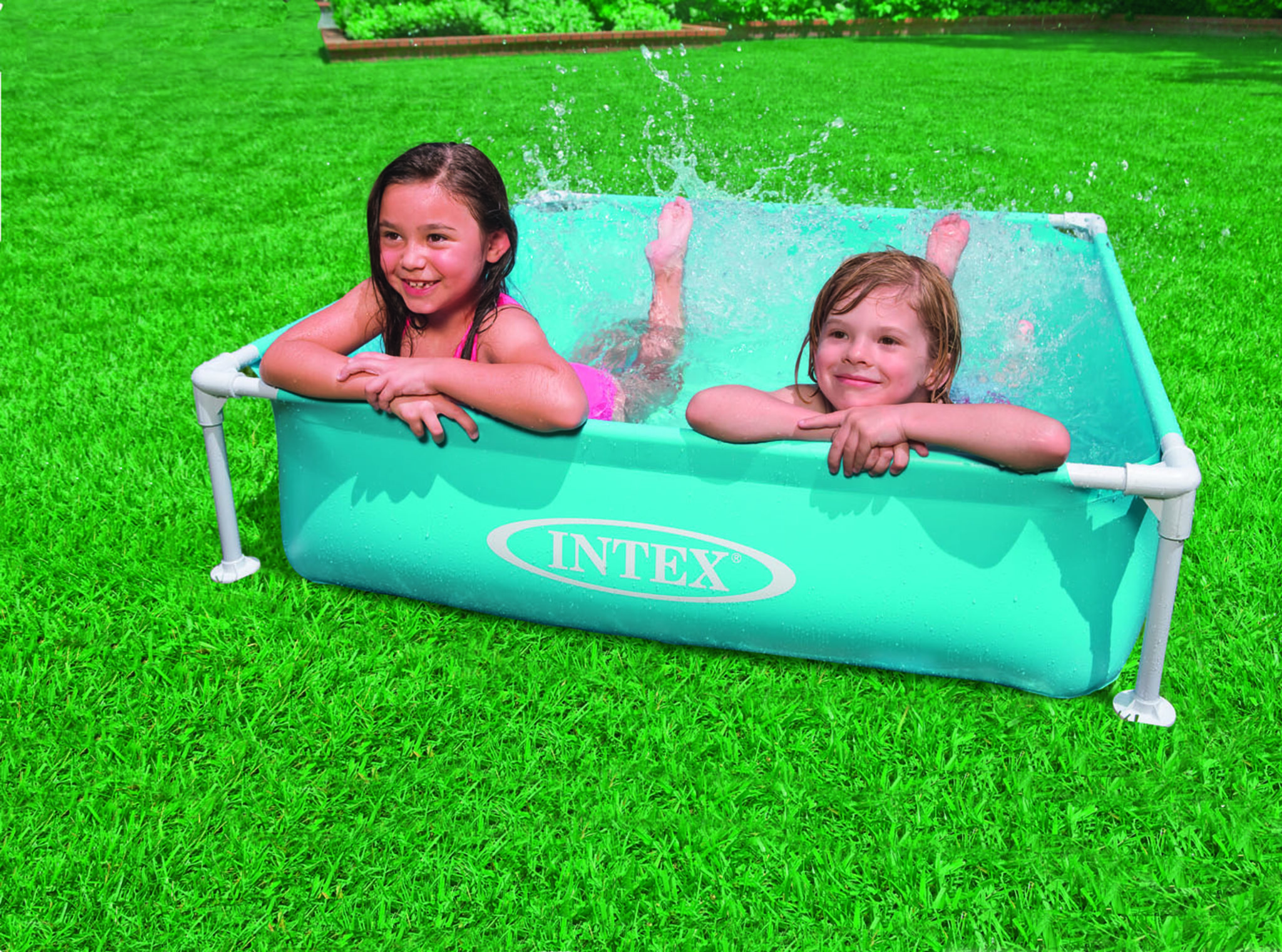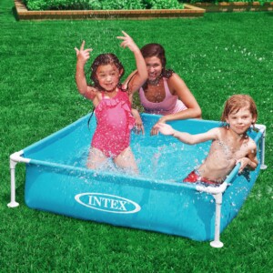 Das 122 x 122 x 30 cm große Frame Pool Mini bietet mit einer massiven Konstruktion, abgerundeten Ecken, Entleerungsventil und einer Folienstärke im Wandbereich von 0,50 mm, Boden 0,25 mm, eine hochwertige und stabile Qualität. Ab 2 Jahren.