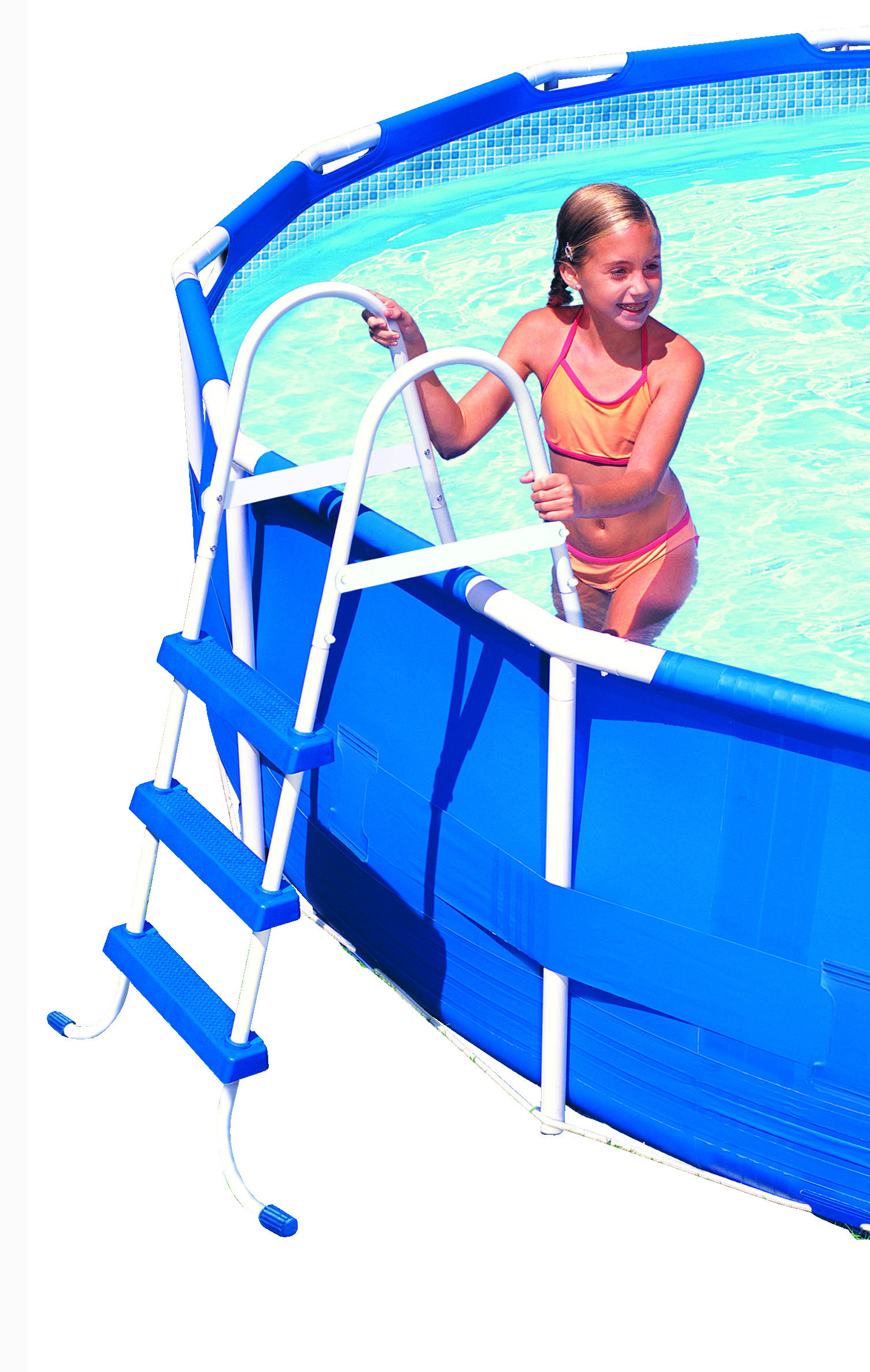 Die mitgelieferte Sicherheitsleiter bietet Ihnen nicht nur eine komfortable Ein- und Ausstiegsmöglichkeit sondern sichert mit den entfernbaren Stufen den unerlaubten Zugang zum Pool.