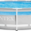 Die innere und äußere Pulverbeschichtung der Metallrahmenteile gewährleistet eine bestmögliche Rostbeständigkeit. Innerhalb von 60 min ist der Pool zu 90 % mit Wasser befüllt (30.079 l) und somit startklar für das Badevergnügen. Die leistungsstarke Krystal Clear Sandfilteranlage sorgt für optimale Filterung des Poolwassers bei geringem Stromverbrauch. Die Intex-Wasserbelebungstechnologie bewirkt während des Betriebes der Pumpe Zirkulation im Poolwasser, gleich einem Sprudelbad. Gleichzeitig wird die Filtration, Wasserklarheit und Luftqualität verbessert. Die Entleerung des Pools erfolgt über eine Ablassvorrichtung mit Schlauchanschluss. Eine Abdeckplane und eine Bodenschutzplane dienen als Schutz vor Verschmutzung des Pools.