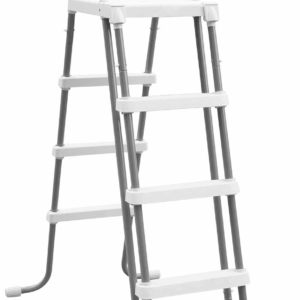Die mitgelieferte Sicherheitsleiter mit Plattform bietet eine komfortable Ein- und Ausstiegsmöglichkeit. Die Außenstufen der Leiter können mittels Öffnen von zwei Klappverschlüssen einfach und schnell entfernt oder hochgeklappt werden. Kindern wird somit das unerlaubte Klettern in den Pool untersagt. Der Pool der Marke Intex besticht durch seine Größe und verleiht dem Garten einen Hauch Urlaubsflair