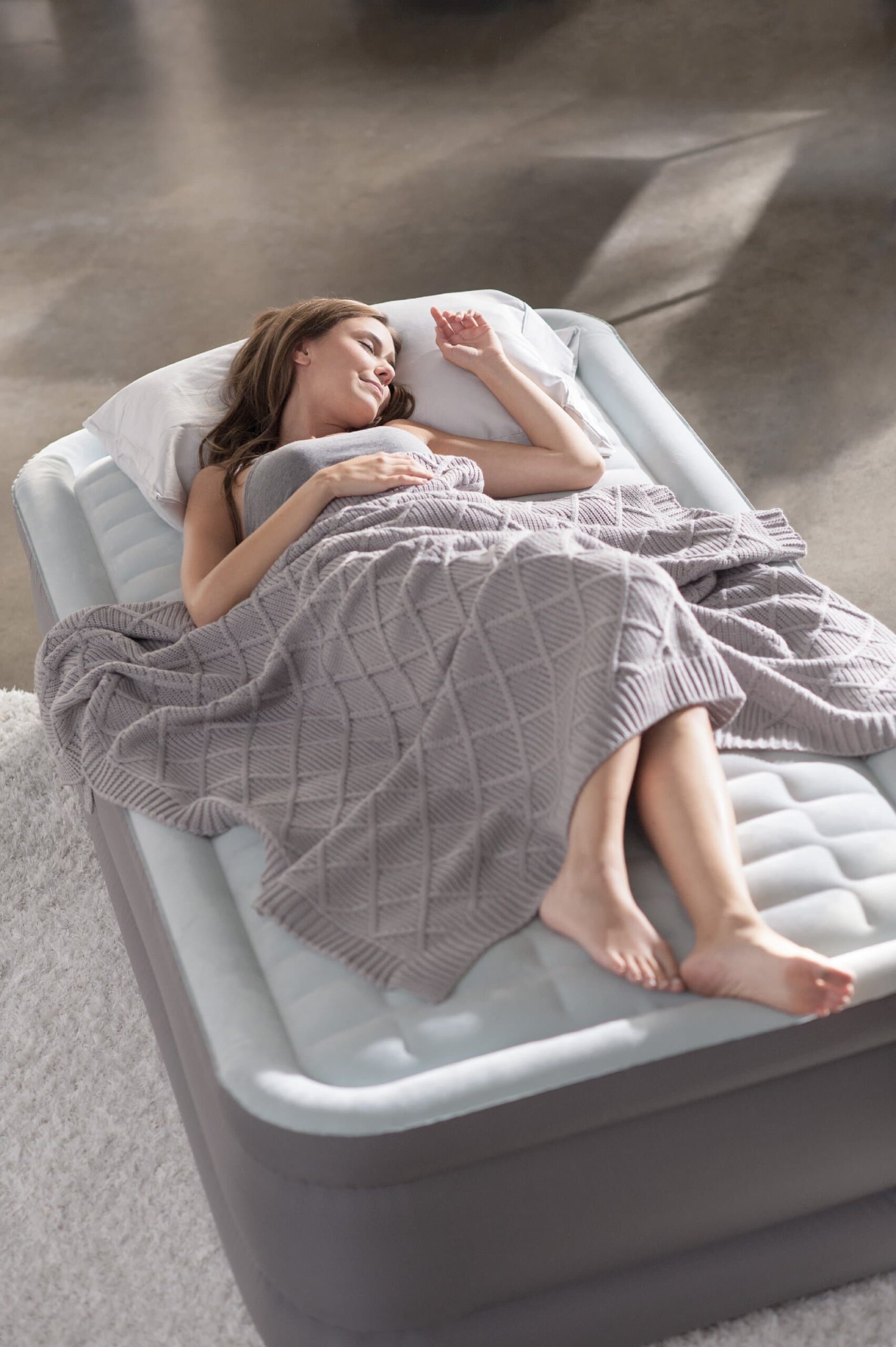 großen PremAire® Luftbett nun möglich. Die reovultionäre Fiber-Tech ™ Technologie unterstützt die perfekte Kombination zwischen struktureller Stabilität und stützendem Halt. Hunderte von kleinen miteinander verbunden Luftkammern sorgen an der luxuriösen, qualitätsgeprüften und beflockten Oberseite des Luftbettes für körpernahen Komfort. Mit der integrierten 230 V Luftpumpe ist das Luftbett innerhalb von Minuten einsatzbereit. Eine neu designte Tragetasche sorgt für einen leichten Transport