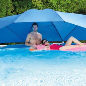 Mit diesem Sonnendach ist man gegen zu intensive Sonnenbestrahlung bestens geschützt. Die halbkuppelartige Form spendet Schatten über einen großen Poolbereich. Durch das Fenster aus Netzmaterial kann abkühlende Frischluft eintrömen. Vier Montagestellen gewährleisten eine sichere und einfache Montage. Bei Nichtgebrauch ist das Sonnendach auch wieder schnell und einfach demontiert.