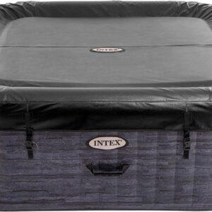 Die schlanke, quadratische Form mit dem Greystone-Muster ist eine schöne Ergänzung für Ihre Terrasse oder Ihren Garten und bietet gleichzeitig einen rundum luxuriösen Komfort. Das voll integrierte QuickFill Inflation System macht das Aufstellen zum Kinderspiel, während das Salzwassersystem und das integrierte Kalkschutzsystem für eine mühelose Wasserpflege sorgt. Lassen Sie sich von 170 leistungsstarken Sprudeldüsen verwöhnen, ruhen Sie sich mit den mitgelieferten Premium-Kopfstützen bequem aus und sorgen Sie mit den mehrfarbig wechselnden LED-Lichtern für eine stimmungsvolle Atmosphäre bei nächtlichen Bädern. Die Kompatibilität mit der Intex Link Spa Management App ermöglicht eine einfache Programmierung Ihres Whirlpools von überall aus.