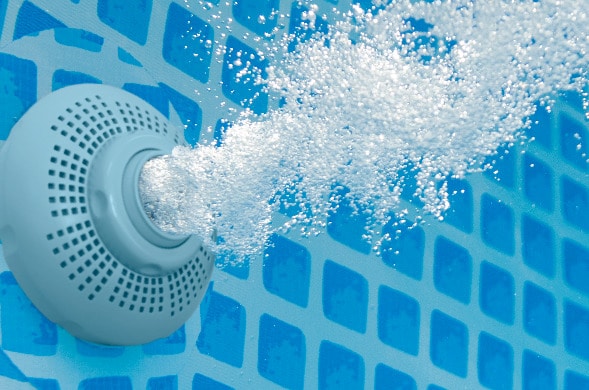 Durch das Mischen von Luft mit Wasser bewirkt der Wasserbelebungsprozess eine Oxidation von Eisen und Mangan, wodurch die Fleckenbildung im Wasser beseitigt wird. Das Ergebnis ist ein kristallklares Poolwasser, dass gut aussieht und sich großartig anfühlt.