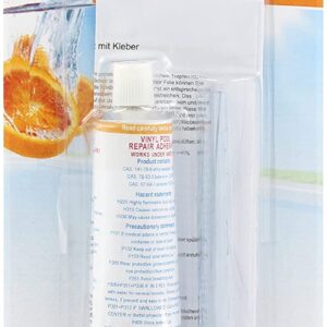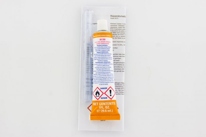 Das speziell für Unterwasseranwendungen entwickelte Set verfügt über eine 260 cm² große und 0,22 mm dicke Vinyl Folie und einen 30 g Kleber.